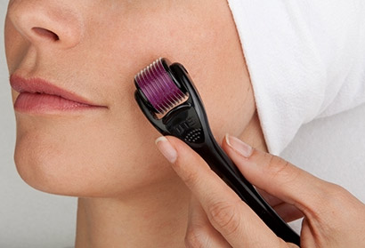 Derma rollers are used for a treatment process called micro-needling or skin needling. It is a form of collagen induction therapy. The actual derma roller is made up of a small, solid wheel attached to a little stick that propels it backwards and forwards across your face in small sections. The roller is covered with hundreds of minuscule 'micro-medical' needles that penetrate the skin, creating lots of tiny micro injuries. Your skin responds by producing extra collagen to 'heal' the punctures, and that's what plumps up the skin again and enhances the natural blood supply – so you get a natural 'glow'. Depressed acne scars, wrinkles, skin texture and tightness are all improved as a result.